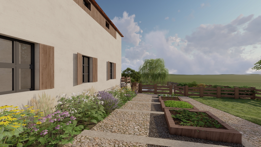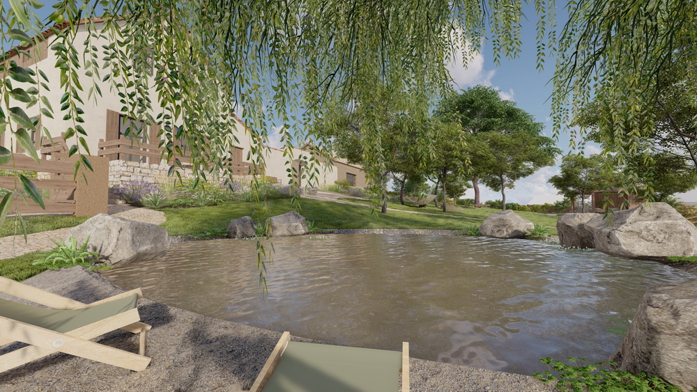 Velký důraz se klade také na venkovní část a využití areálu. Počítá se s přírodním koupalištěm o ploše zhruba 250 m², rozlehlou zahradou vhodnou pro společné chvíle i menší akce a dalším zázemím pro pohodový pobyt. Díky prostoru a konceptu se Statek U Hrušků hodí nejen pro běžné ubytování, ale také pro svatby, rodinné oslavy, setkání přátel nebo menší firemní akce – vždy v duchu klidu, soukromí a kvality, nikoliv masového provozu.